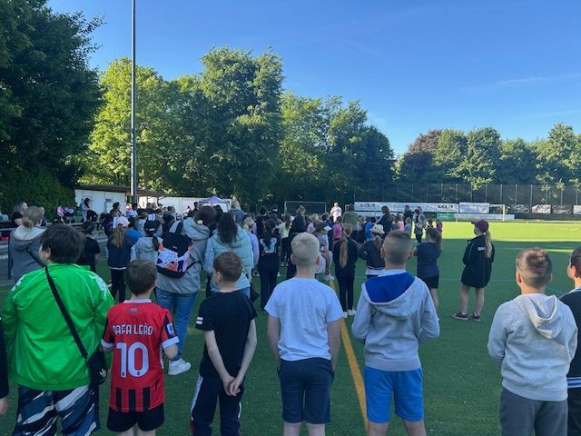 Die Stimmung war gut und das Wetter optimal, sodass alle Kinder mit Feuereifer bei der Sache waren. Insbesondere bei einem Wettspiel der Klassen gegeneinander, welches zum Abschluss gespielt wurde, gab jede/r Teilnehmer/in sein/ihr Bestes.