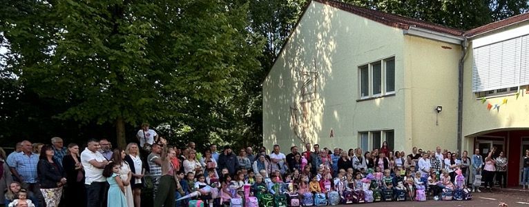 Am 28.08.2025 wurden die neuen Erstklässler eingeschult. Der Tag startete mit dem Einschulungsgottesdienst in der Versöhnungskirche. Danach wurden die Kinder an der Schule mit verschiednene Aufführungen der Klasse 4 und 2b begrüßt. Schließlich durften die Erstklässler das erste Mal in ihre Klasse gehen und die erste Schulstunde erleben. Die Eltern und Familienangehörigen wurden in der Zwischenzeit von dem Förderverein und helfenden Eltetrn mit einem leckeren Frühstück verwöhnt. Das war ein schöner und aufregender Tag!