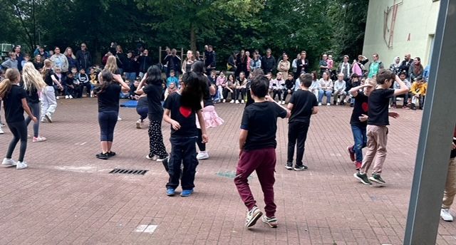 Im Anschluss versammelten sich alle Gäste auf dem Schulhof, wo die Kinder mit Reden, Liedern, Tänzen und kleinen Überraschungen verabschiedet wurden. Die Viertklässler haben ihre Spuren in unserer Schule hinterlassen- als Freunde, Mitschüler*innen und Persönlichkeiten, die wir nun mit einem lachenden und einem weinenden Auge ziehen lassen.