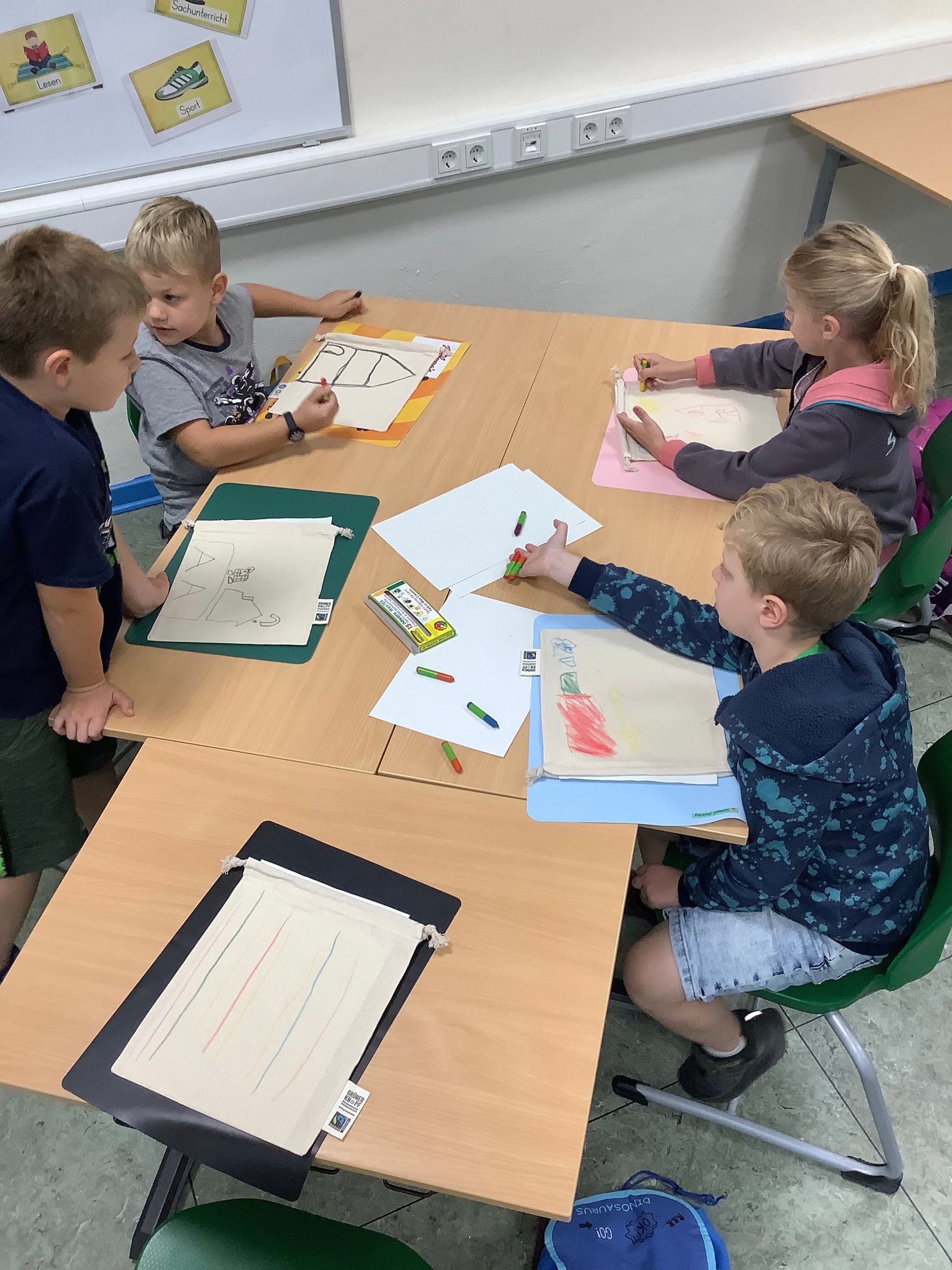 In der Klasse 3a wurde es am Donnerstag sehr spannend. Die Kinder stellten aus Gemüse und gesammelten Pflanzen Farbe her. Damit malten sie anschließend tolle Bilder.