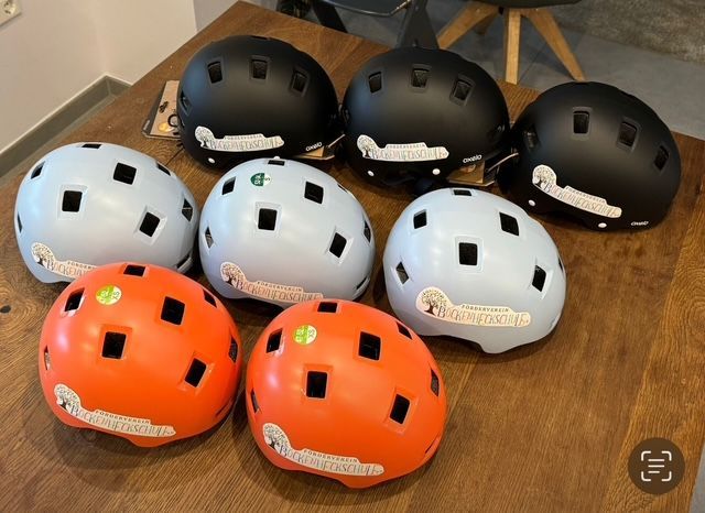 Für noch mehr Sicherheit beim Rollerfahren in den Pausen sorgen nun die schönen neuen Fahrradhelme, die der Förderverein gesponsert und mit dem Böckenheck-Logo versehen hat. Wir freuen uns sehr über die neue Ausstattung und sagen Dankeschön.