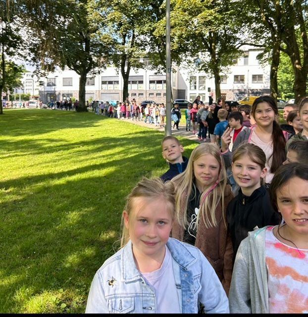 Heute Vormittag (05.07.2024) verabschiedeten wir uns von unseren ViertklässlerInnen, die nach den Sommerferien die weiterführende Schule besuchen werden. Nachdem Frau Stöcker die Kinder mit ihren Eltern begrüßte, erinnerten sich die ViertklässlerInnen an schöne kostbare Momente ihrer Grundschulzeit, die sie im Vorfeld im Unterricht reflektierten, aufschrieben und in ihrem Abschlussbuch sammelten. Mit der Tanzaufführung der Klasse 3a, den die Kinder mit der Tanzlehrerin Frau Müller einstudiert hatten, wurde das Programm abgeschlossen. Mit dem Gang auf dem roten Teppich, durch die Winkegasse der Kinder und anschließend durch den geschmückten Torbogen verabschiedeten die ViertklässlerInnen sich dann von allen Böckenheck-SchülerInnen. Zusätzlich verabschiedete sich die gesamte Schulgemeinde anschließend von Frau Schmaling, die nach vielen Jahren in den wohlverdienten Ruhestand geht.