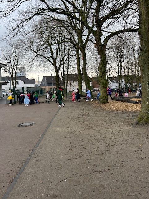 Am 28.2. feierten alle Kinder in den Klassen Karneval. Im Anschluss trafen sich alle Klassen in der Aula und dort bekamen die Kinder eine Tanzdarbietung geboten. Anschließend gab es eine große Polonaise durch das Schulhaus und über den Schulhof.