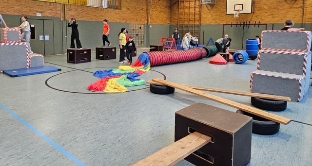 Am 4. und 11. Februar gab es die „mobile Pause“ in der Turnhalle der Böckenheckschule. Die offene Kinder- und Jugendarbeit der Stadt Datteln baute die mobile Bewegungsbaustelle in der Turnhalle auf und sorgte somit für eine abwechslungsreiche Sportstunde für alle Klassen.
