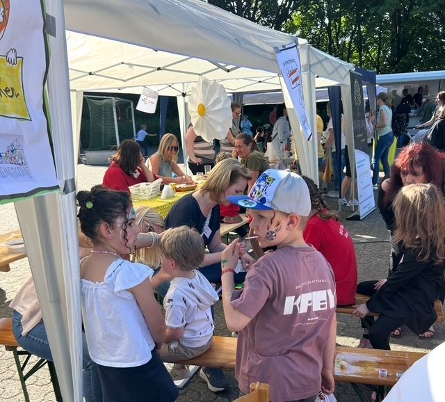 Am Samstag (10.Mai 2025) fand von 14 bis 22 Uhr das Stadtteilfest auf dem Marktplatz von Meckinghoven statt. Viele Institutionen und Vereine boten bei strahlendem Sonnenschein viele Aktivitäten für alle Altersklassen an. Auch unsere Schule nahm daran teil. Wir boten Dosenwerfen, Schminken für Kinder, Bastelaktionen von der OGS, Chorauftritt des Schulchors und Waffeln an.