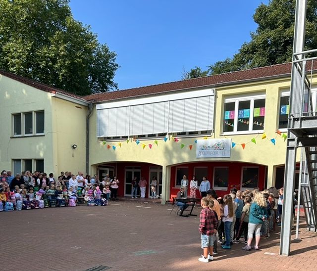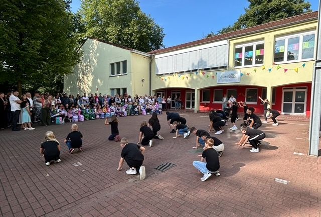 Am 28.08.2025 wurden die neuen Erstklässler eingeschult. Der Tag startete mit dem Einschulungsgottesdienst in der Versöhnungskirche. Danach wurden die Kinder an der Schule mit verschiednene Aufführungen der Klasse 4 und 2b begrüßt. Schließlich durften die Erstklässler das erste Mal in ihre Klasse gehen und die erste Schulstunde erleben. Die Eltern und Familienangehörigen wurden in der Zwischenzeit von dem Förderverein und helfenden Eltetrn mit einem leckeren Frühstück verwöhnt. Das war ein schöner und aufregender Tag!