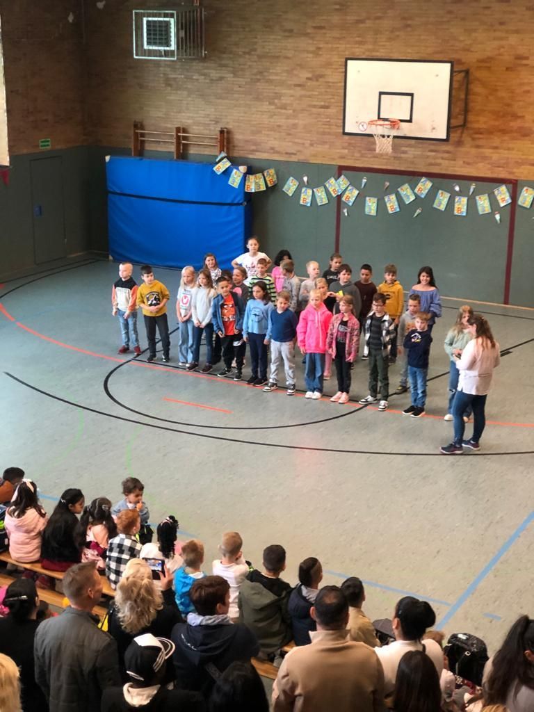 Am vergangenen Dienstag, den 08.08.2023 sind 41 neue Erstklässler mit einer großen Feier eingeschult worden. Das gemeinsame Fest begann mit einem Gottesdienst und wurde in der Turnhalle der Böckenheckschule fortgesetzt. Viele begeisterte Gäste fanden den Weg zur Schule, um ihren frischgebackenen Schulkindern zur Seite zu stehen. Alle Klassen hatten zur Begrüßung etwas vorbereitet. Zusammen mit ihren Klassenlehrerinnen ging es dann für die neuen Schulkinder auf den Weg zur ersten Unterrichtsstunde- traditionell durch den Begrüßungsbogen und der Winkegasse.