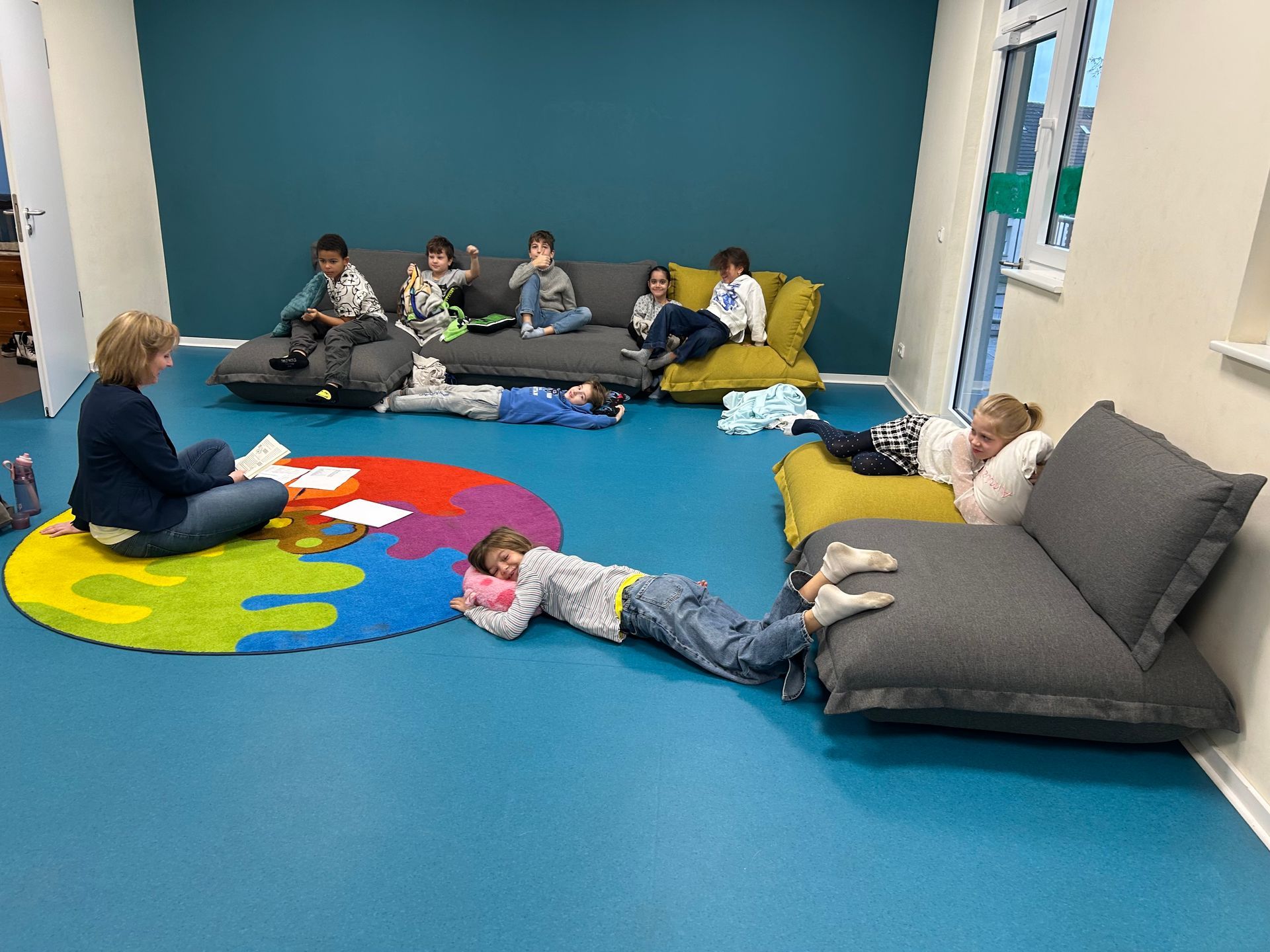 Die Kinder können demnächst wieder Bücher ausleihen, mit der ganzen Klasse hier eine Lesestunde veranstalten, oder sich mit den Maxikindern des Johanniter Kindergartens im Projekt „Book Budddies“ gemütlich zusammen setzen.