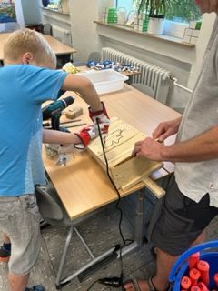 Die Kinder der 3a bastelten an diesem Tag mit Herrn Link-Stern Fledermauskästen. Diese werden auf der Steuobstwiese und rund um die Böckenheckschule aufgehängt werden. Denn die Fledermäuse werden immer seltener, da immer mehr Lebensraum für sie verschwindet.