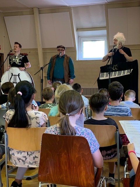 Chris Kramer studierte mit den Kindern der Böckenheckschule das Musical ,,Die kleine Mundharmonika" ein. Einer der besten Mundharmonika-Spieler des Landes war mit seinem Team zu Besuch. Unterstützt wurde er bei den Proben von dem deutschen Meister im Beatboxen Kevin Oneal. An drei Nachmittagen übten die Kinder fleißig und am Freitag 13.05.2022 war es dann endlich soweit. In der Aula der Schule wurde das Stück den Eltern und Interessierten vorgeführt.