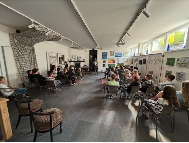 Am 30.4. 2025 fuhr die Klasse 4a mit dem Bus in die Stadt, denn sie war von dem Besitzer des Buchladens "Bücherwurm" Herr Tänzer eingeladen worden. Neugierig konnten sich die 30 Schüler*innen im Buchladen umsehen. Danach ging es eine Etage tiefer und die Kinder erfuhren von Herr Tänzer eine Menge über Bücher, der Ausbildung zum Buchhändler und bekamen noch eine tolle Geschichte vorgelesen. Zum Abschluss gab es dann für jedes Kind das Buch: Cool wie Bolle.