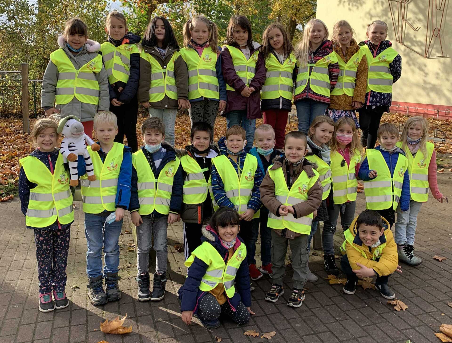 Am 02.11.2021 erhielt die Klasse 1a ihre Warnwesten der Bürgerstiftung Emscher-Lippe-Land.
