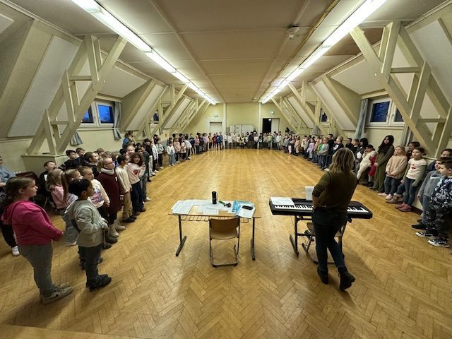 Am 02.12.2024 startete das traditionelle Adventssingen mit allen Kindern in der Aula. Jeden Montag in der Adventszeit wird mit gemeinsamen Liedern die Woche begonnen. Ein wunderschöner Chor war zu hören.