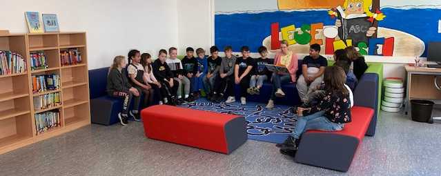 Am Montag, dem 23.05.2022 erschien Herr Tänzer, der Inhaber der Buchhandlung Bücherwurm, in unserer Schule. Er las den Kindern der Klassen 4a und 4b ein Kapitel aus dem Buch: „Scary Harry, von allen guten Geistern verlassen“ vor. Die Kinder hatten es sich in der neu eröffneten „Leseinsel“ gemütlich gemacht und hörten gebannt zu. Anschließend konnten sie Fragen sowohl zum Buch, als auch zur Person des Buchhändlers stellen. Dies war eine nachträgliche Aktion zum Welttag des Buches.
