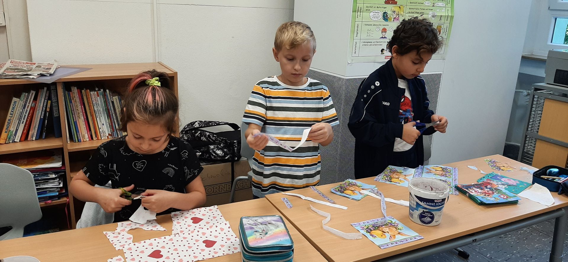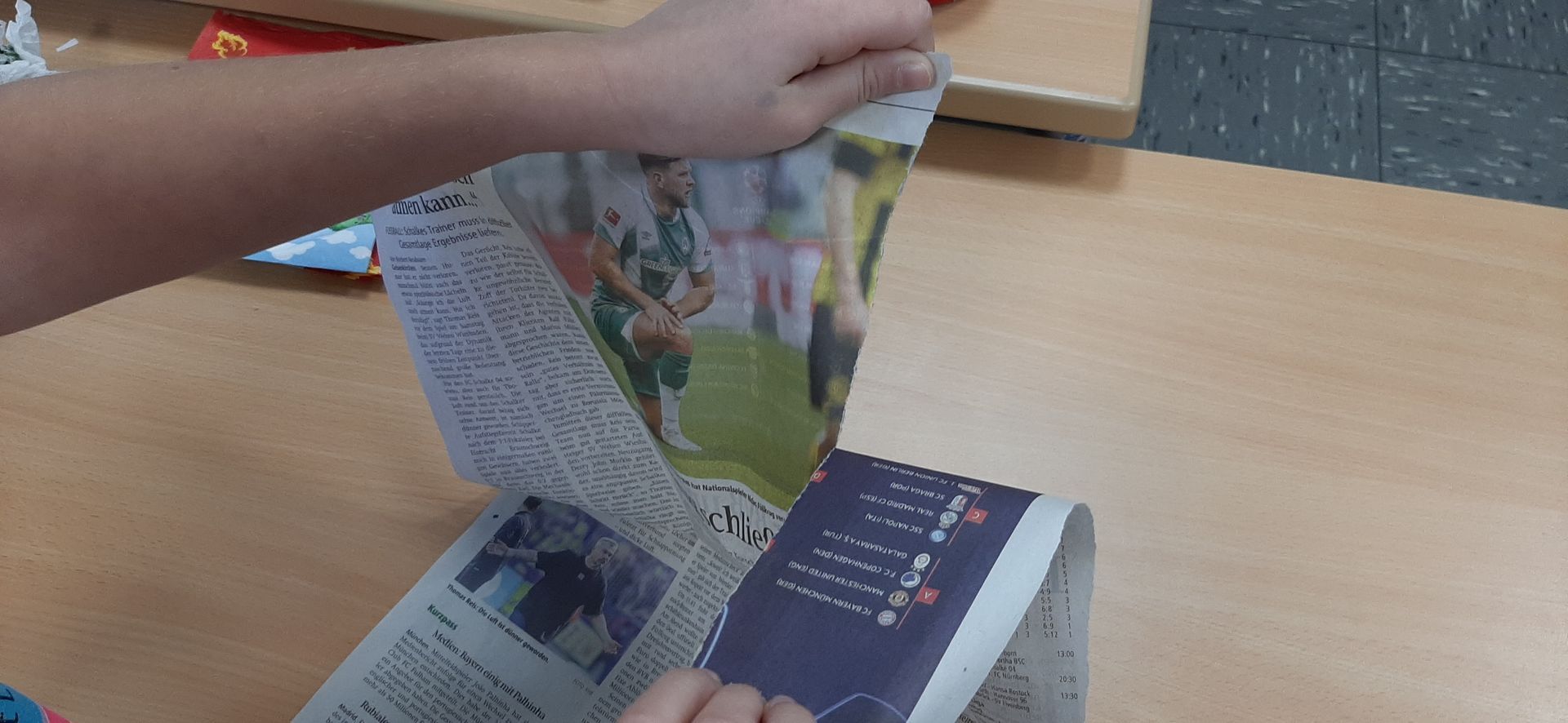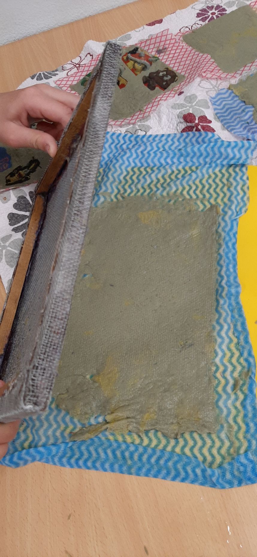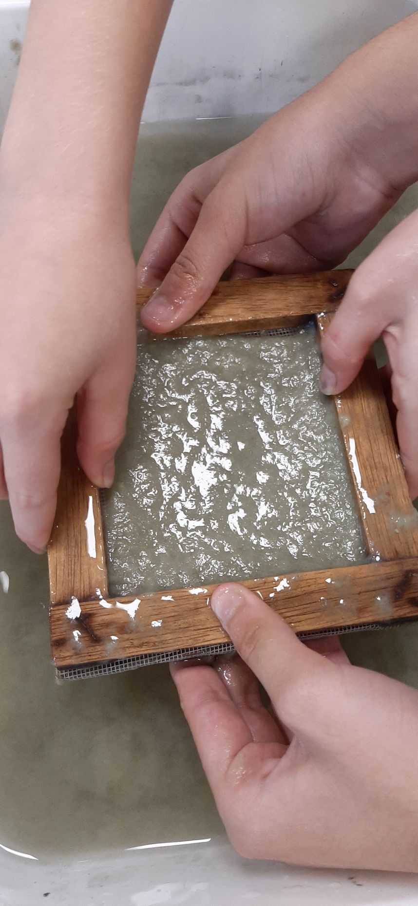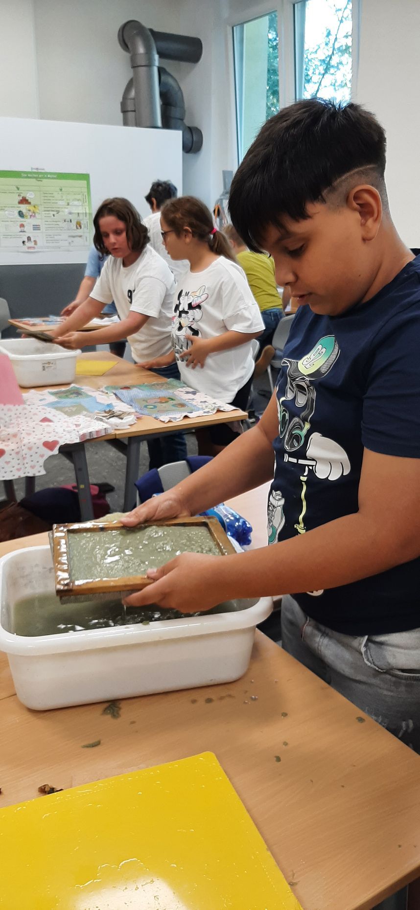 In den Klassen 2 und 4 konnten die Kinder eigenes Papier aus alten Zeitungen herstellen. Das hat allen sehr viel Freude bereitet.
