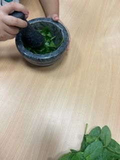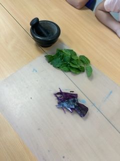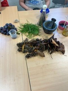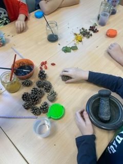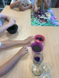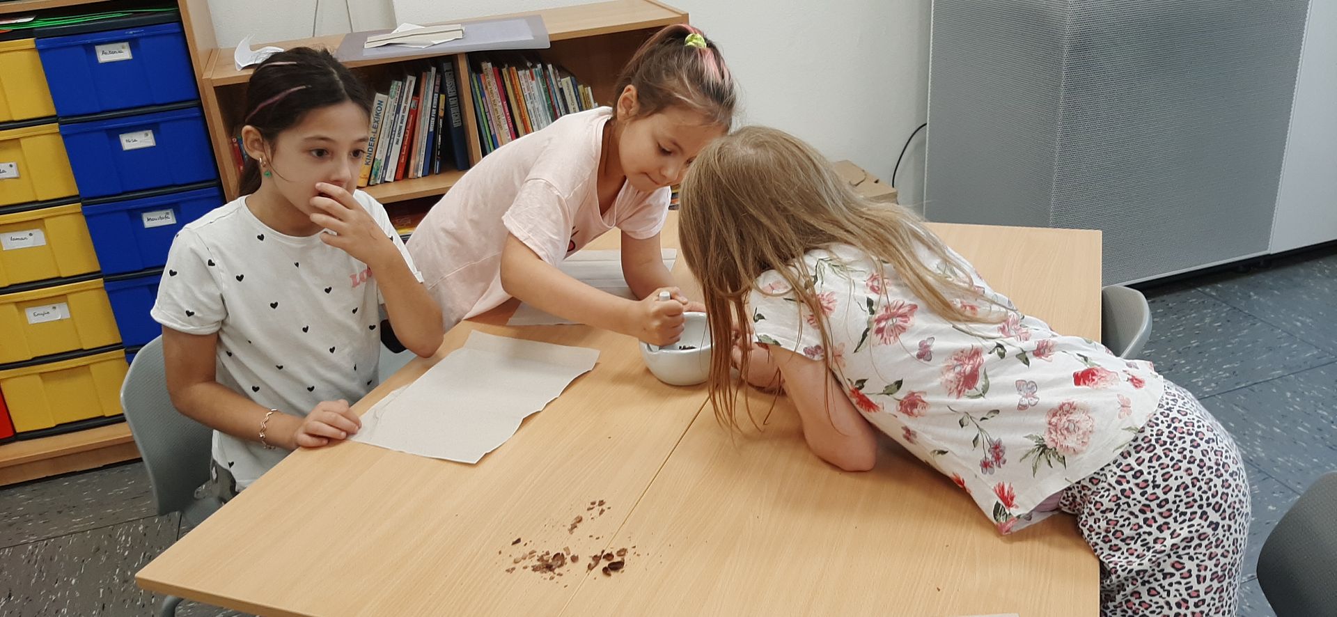 In der Klasse 3a wurde es am Donnerstag sehr spannend. Die Kinder stellten aus Gemüse und gesammelten Pflanzen Farbe her. Damit malten sie anschließend tolle Bilder.