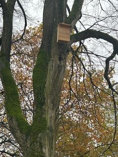 Die Fledermauskästen, die am Tag der offenen Tür von der Klassse 3a mit Herrn Link- Stern gebastelt wurden, sind aufgehängt worden. Rund um die Böckenheckschule finden die Fledermäuse nun Schutz .