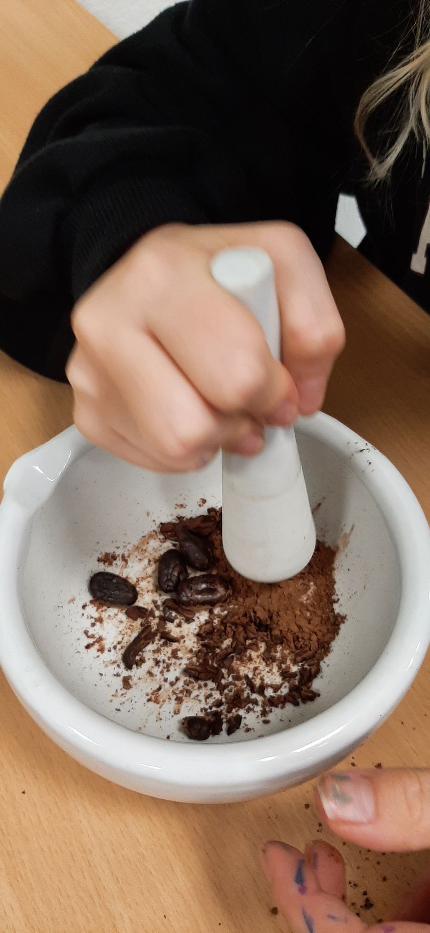 Die Kinder der Böckenheckschule haben in der Projektwoche zur Nachhaltigkeit verschiedene Themen bearbeitet. Wir haben dabei mit dem biologischen Zentrum Lüdinghausen und dem Hof Wessels aus Herten zusammengearbeitet. Es wurde im Sinne "aus Alt mach Neu" aus Zeitungspapier und Servierten eigenes Papier hergestellt, das Thema SDG`s wurde besprochen und die Streuobstwiese hinter der Schule wurde gründlich erkundet. Das schuleigene Obst wurde anschließend im Klassenraum verkostet. Das schmeckte lecker. Es war vor allem ein gesunder Kontrast zur Herstellung eigener Schokolade aus frischen Kakaobohnen. Diese durften die Kinder am ersten Tag herstellen, verzieren und sich direkt schmecken lassen.