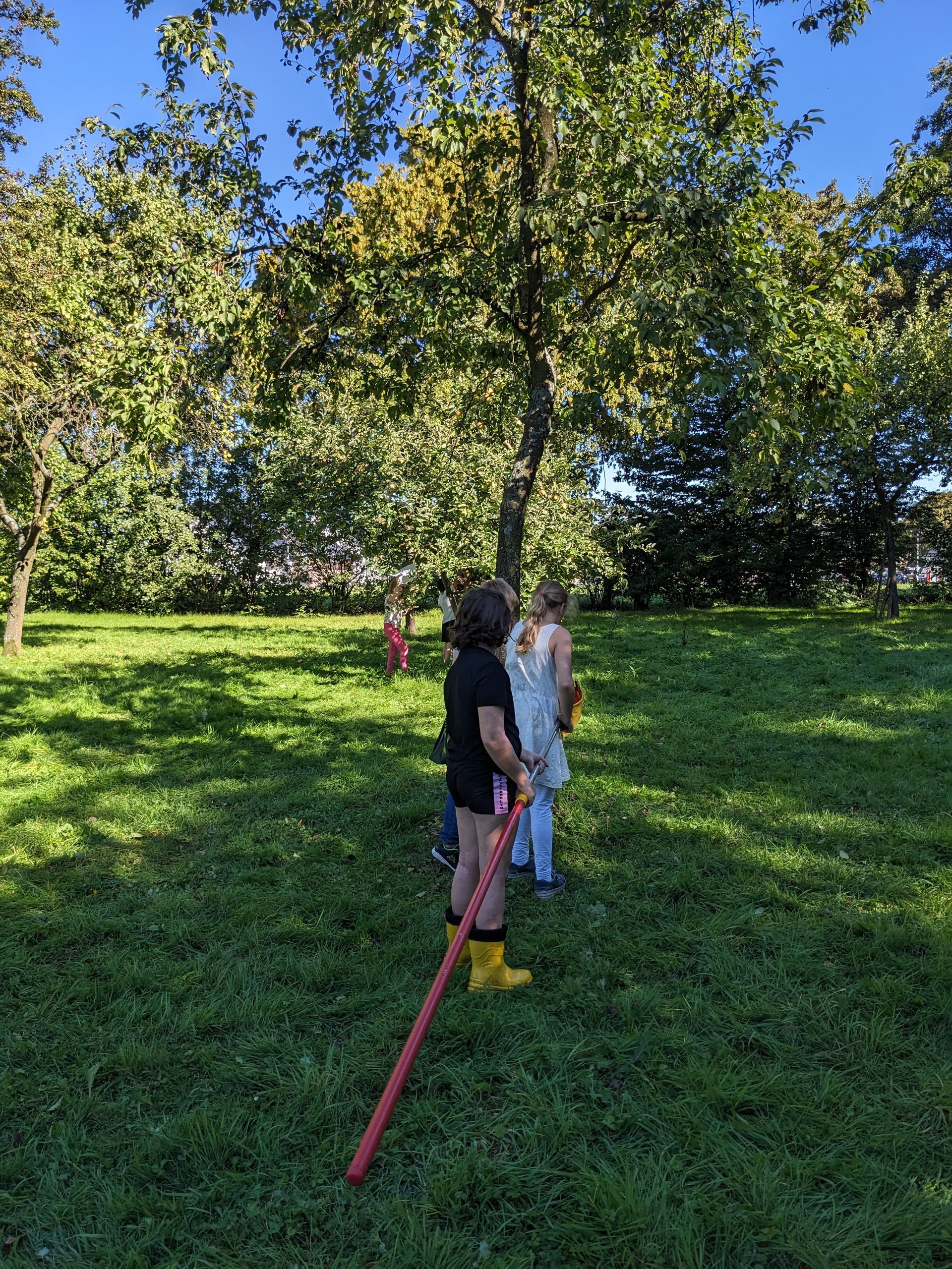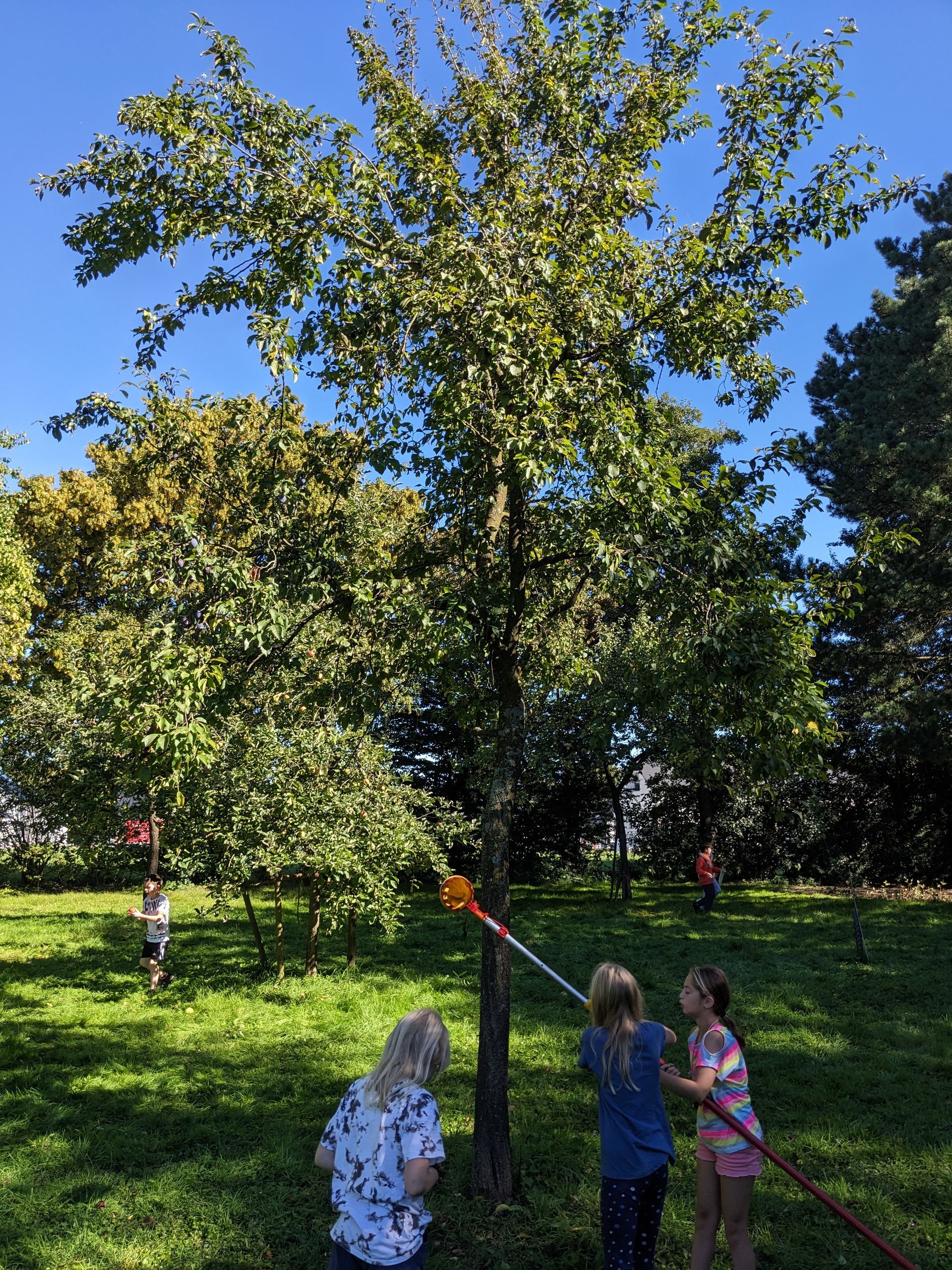 Mit der Vorstellung von "Kalle Steinkauz" wurden die Kinder der Böckenheckschule in den Klassen auf die Erkundung unserer Obstwiese hinter dem Schulgebäude eingestimmt. In Gruppen erforschten sie anhand verschiedener Aufträge die Pflanzen- und Tierwelt. Eine Kleingruppe der Klasse 4a erntete mit einem langen Obstpflücker Äpfel und Pflaumen. Im Klassenraum probierten die Kinder die Früchte und sammelten Ideen, wie unsere Streuobstwiese gepflegt und genutzt werden kann. Das Zusammenleben der Pflanzen und Tiere, die Vielfalt der Lebewesen auf unserer Obstwiese und den Nutzen dieses Lebensraums für uns Menschen erlebten die Kinder durch die Vielfalt der Aufgaben mit allen Sinnen. Die Aktivität "Streuobstwiese" fand ihren Abschluss mit der Verabschiedung des liebgewonnenen Steinkauzes "Kalle" in die Freiheit.